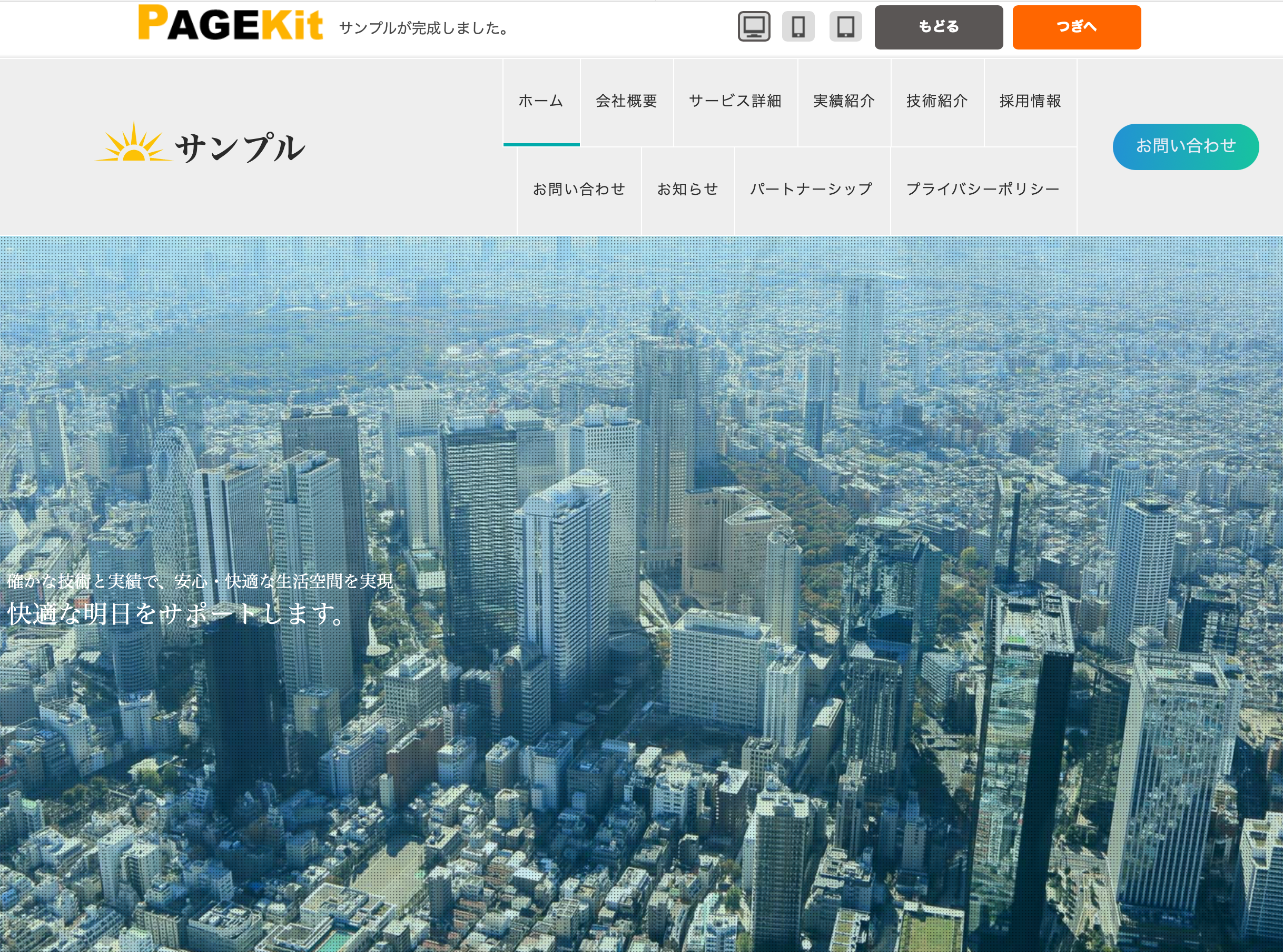 サンプルのホームページが完成します!