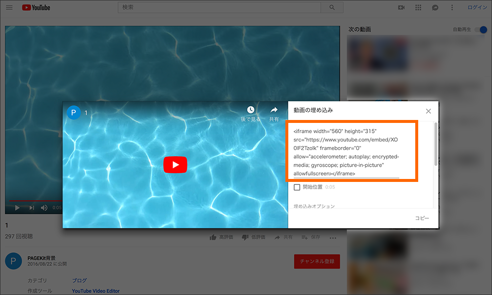 手順1:YouTubeの埋め込みコードを取得