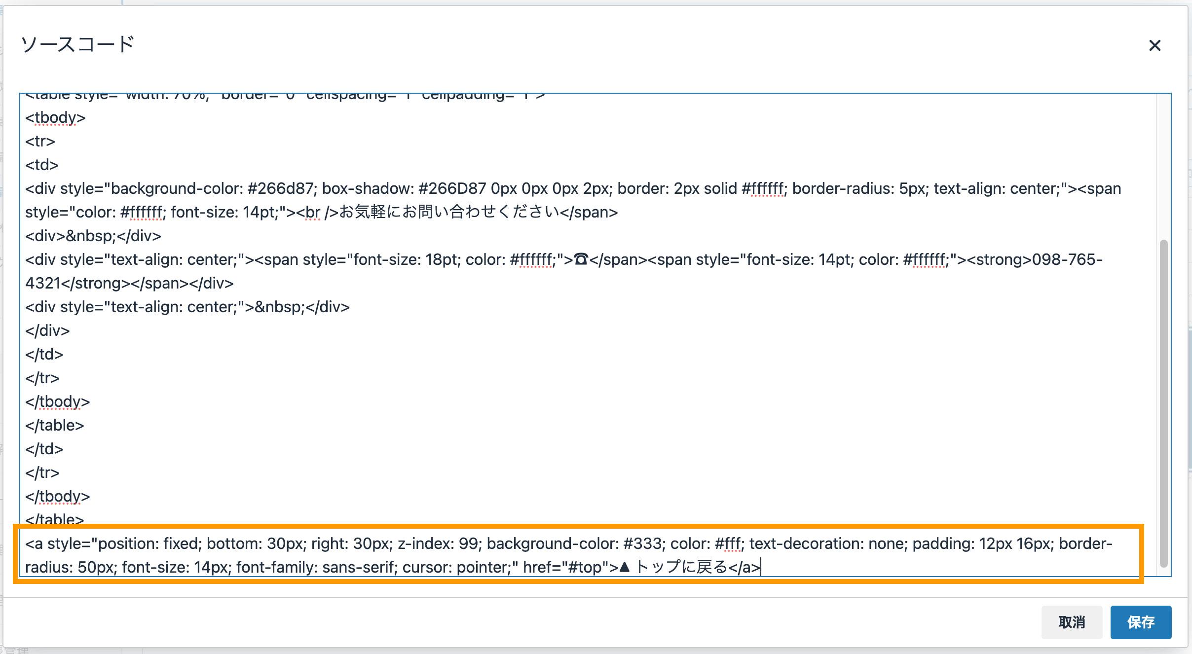 これで全ページに「トップに戻る」ボタンが表示されるようになります。