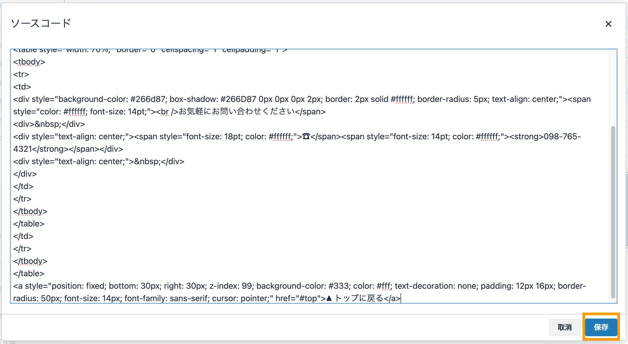 編集画面「保存」ボタンを押して、編集内容を保存します。
