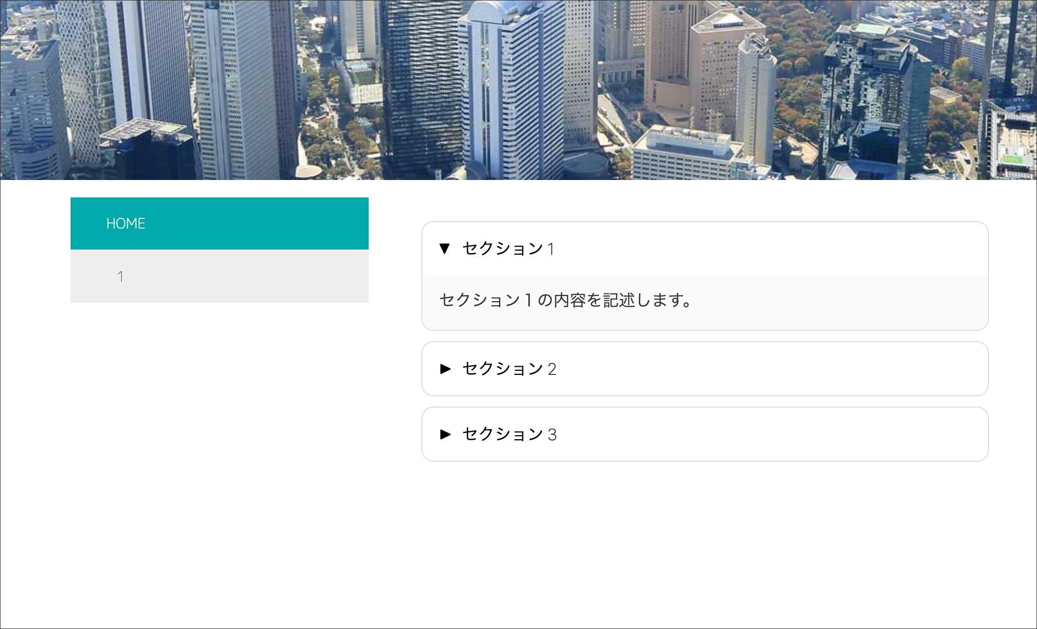見出しをクリックすると内容が開き、別の場所を選ぶと閉じます。