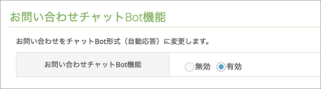 (2) ページ内の「お問い合わせチャットBot機能」にて、「有効」を選択します。